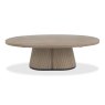 Blending rustic character with contemporary design, the Vega Grey Oiled Oak range adds warmth and sophistication to the dining experience. Elliptical dining table tops, surfaced with hardwearing sawcut oak and finished in a grey oil finish, feature sturdy pedestal bases with tapered silhouettes and v-groove detailing, offering both durability and visual appeal. The range extends to versatile pedestal based occasional pieces, including an oval lamp and coffee table. Additionally, further choice is offered with drum style occasional designs with discreet storage behind hinged doors. Cabinetry with soft curved ends sit on contrasting peppercorn bases with refined scalloped legs. Concealed drawers in the sideboards provide practical storage, while moulded ply-back chairs and barstools, upholstered in ivory bonded leather or fine-weave grey fabric, deliver comfort with modern elegance.